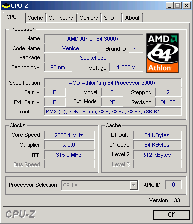 | Процессор (ядро) | AMD Athlon 64 (Venice) |
