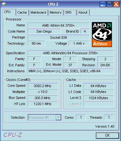| Процессор (ядро) | AMD Athlon 64 (San Diego) |