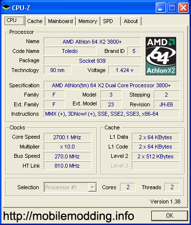 | Процессор (ядро) | AMD Athlon 64 X2 (Toledo) |