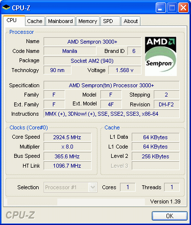 | Процессор (ядро) | AMD Sempron (Manila) |