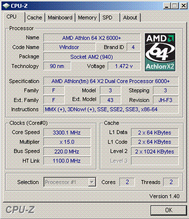 Результат разгона AMD Athlon 64 X2 (Windsor)