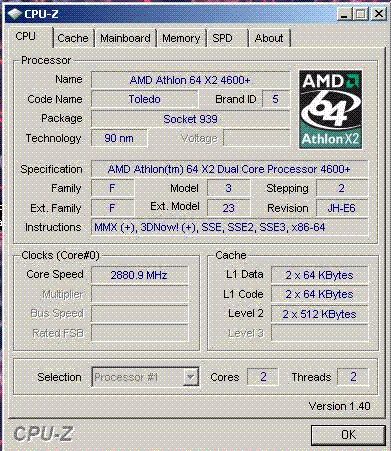 | Процессор (ядро) | AMD Athlon 64 X2 (Toledo) |