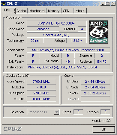 | Процессор (ядро) | AMD Athlon 64 X2 (Windsor) |