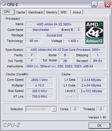| Процессор (ядро) | AMD Athlon 64 X2 (Manchester) |