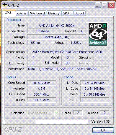 Результат разгона AMD Athlon 64 X2 (Brisbane)
