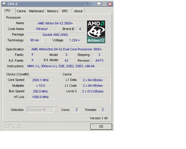 | Процессор (ядро) | AMD Athlon 64 X2 (Windsor) |