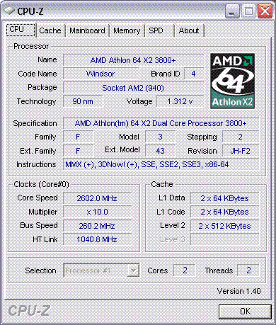 | Процессор (ядро) | AMD Athlon 64 X2 (Windsor) |