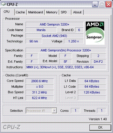| Процессор (ядро) | AMD Sempron (Manila) |