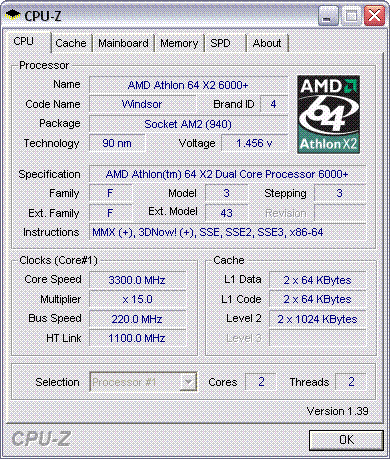 Результат разгона AMD Athlon 64 X2 (Windsor)