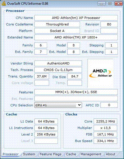 | Процессор (ядро) | AMD Athlon XP (Thoroughbred) |