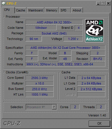 Результат разгона AMD Athlon 64 X2 (Windsor)