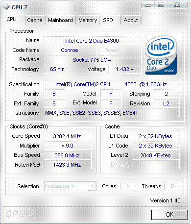 Результат разгона Intel Core 2 Duo (Conroe-2M)