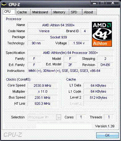 | Процессор (ядро) | AMD Athlon 64 (Venice) |