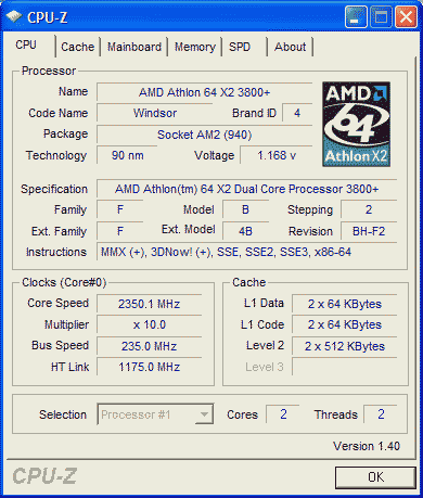 | Процессор (ядро) | AMD Athlon 64 X2 (Windsor) |