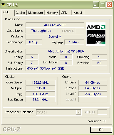| Процессор (ядро) | AMD Athlon XP (Thoroughbred) |