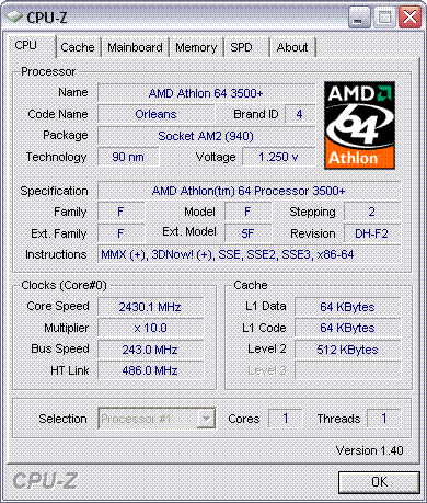 Результат разгона AMD Athlon 64 (Orleans)