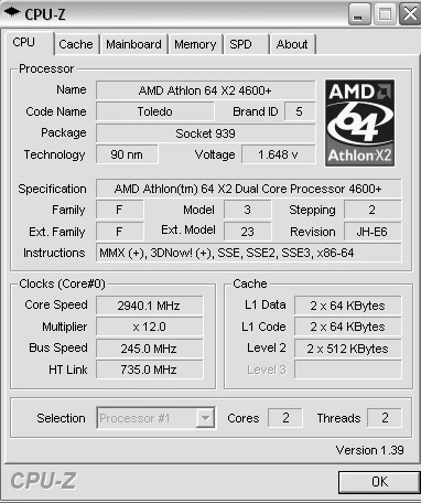 Результат разгона AMD Athlon 64 X2 (Toledo)