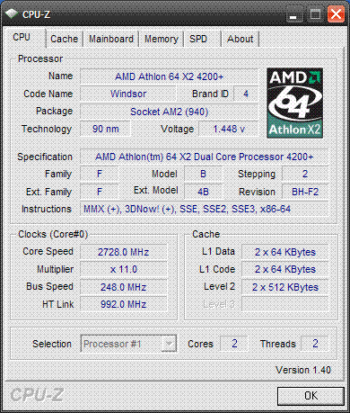 | Процессор (ядро) | AMD Athlon 64 X2 (Windsor) |