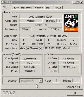 Результат разгона AMD Athlon 64 (Venice)