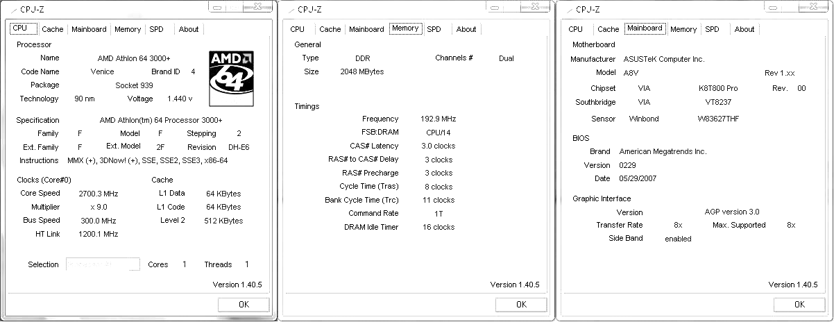 | Материнская плата | Asus A8V |