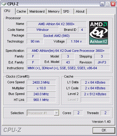 | Процессор (ядро) | AMD Athlon 64 X2 (Windsor) |