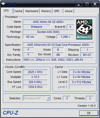 | Процессор (ядро) | AMD Athlon 64 X2 (Brisbane) |