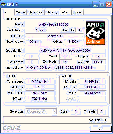 Результат разгона AMD Athlon 64 (Venice)