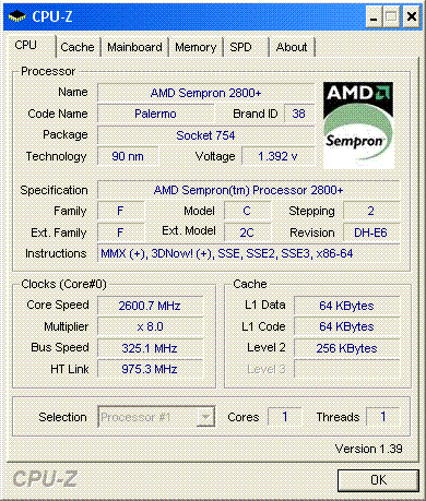 Результат разгона AMD Sempron (Palermo)
