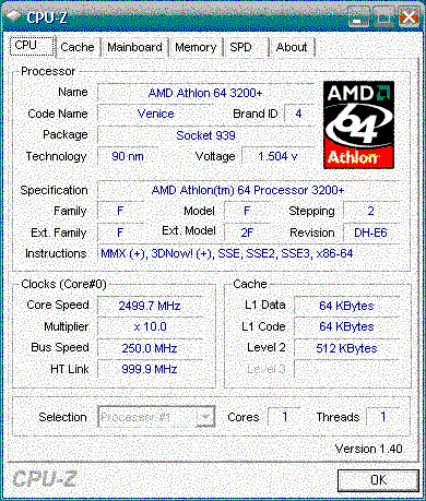 Результат разгона AMD Athlon 64 (Venice)