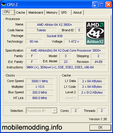 | Процессор (ядро) | AMD Athlon 64 X2 (Toledo) |