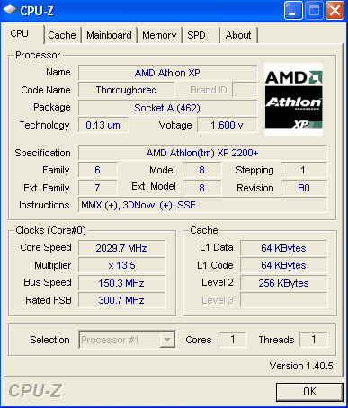 | Процессор (ядро) | AMD Athlon XP (Thoroughbred) |