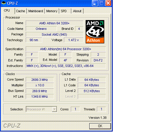 | Процессор (ядро) | AMD Athlon 64 (Orleans) |