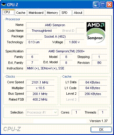 | Процессор (ядро) | AMD Sempron (Thoroughbred) |