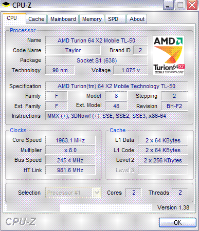 Результат разгона AMD Mobile