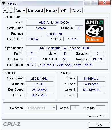 | Процессор (ядро) | AMD Athlon 64 (Venice) |