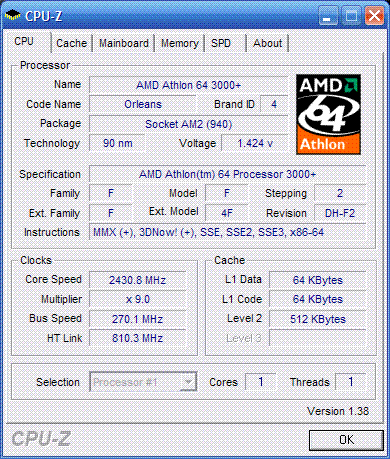 | Процессор (ядро) | AMD Athlon 64 (Orleans) |
