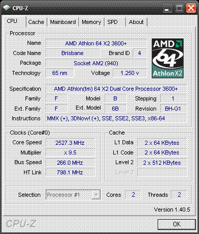 Результат разгона AMD Athlon 64 X2 (Brisbane)
