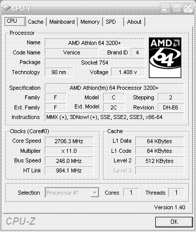 | Процессор (ядро) | AMD Athlon 64 (Venice) |