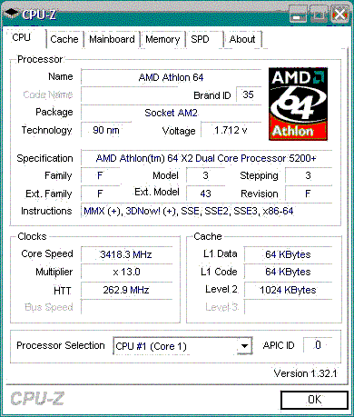 | Процессор (ядро) | AMD Athlon 64 X2 (Windsor) |