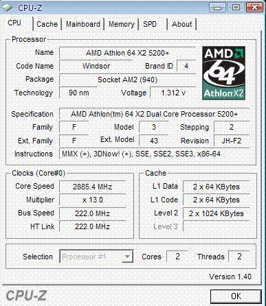 | Процессор (ядро) | AMD Athlon 64 X2 (Windsor) |