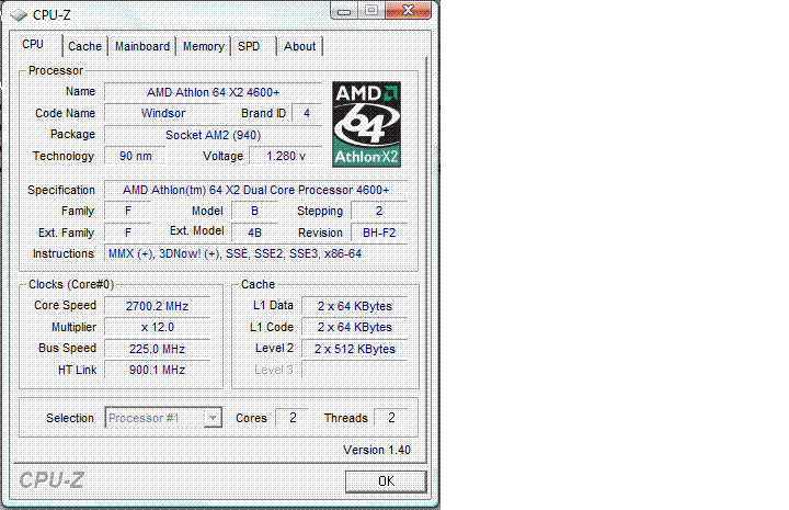 | Процессор (ядро) | AMD Athlon 64 X2 (Windsor) |