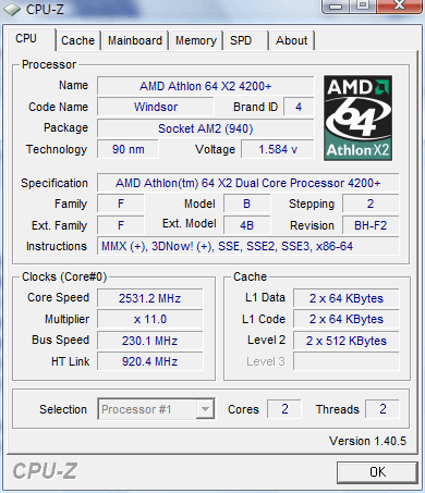 | Процессор (ядро) | AMD Athlon 64 X2 (Windsor) |