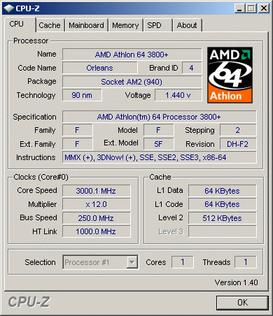 Результат разгона AMD Athlon 64 (Orleans)