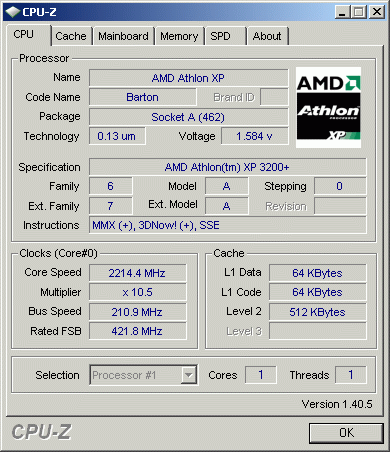 | Процессор (ядро) | AMD Athlon XP (Barton) |