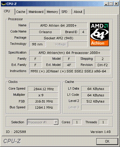 Результат разгона AMD Athlon 64 (Orleans)