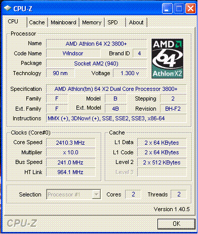 | Процессор (ядро) | AMD Athlon 64 X2 (Windsor) |