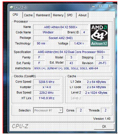 | Процессор (ядро) | AMD Athlon 64 X2 (Windsor) |