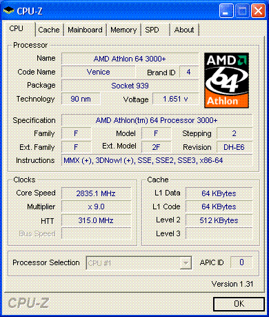 Результат разгона AMD Athlon 64 (Venice)