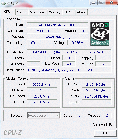 | Процессор (ядро) | AMD Athlon 64 X2 (Windsor) |