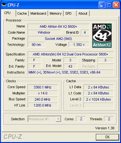 Результат разгона AMD Athlon 64 X2 (Windsor)